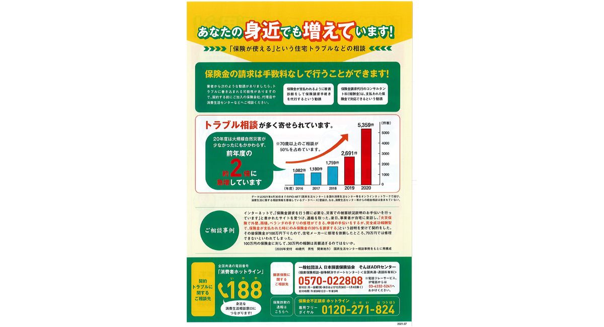 「火災保険の請求忘れはありませんか?こちらが請求のお手伝いをいたします」